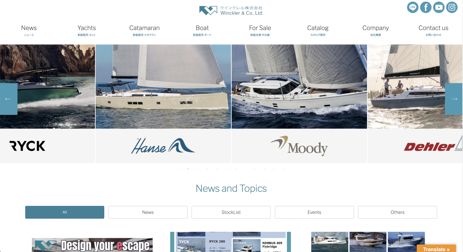 神奈川県の船舶販売業者様、ウインクレル様のホームページ制作を担当いたしました。